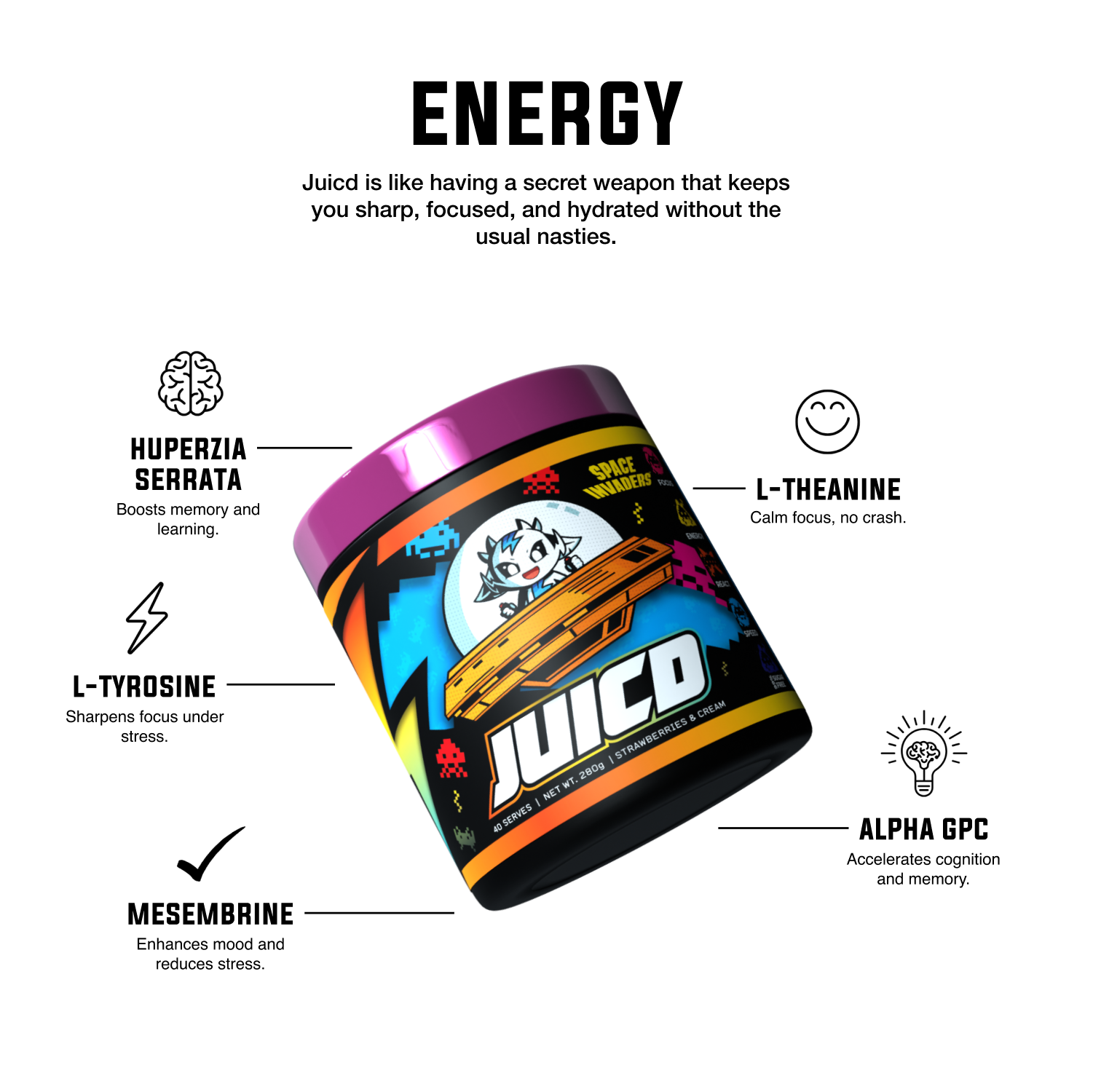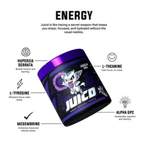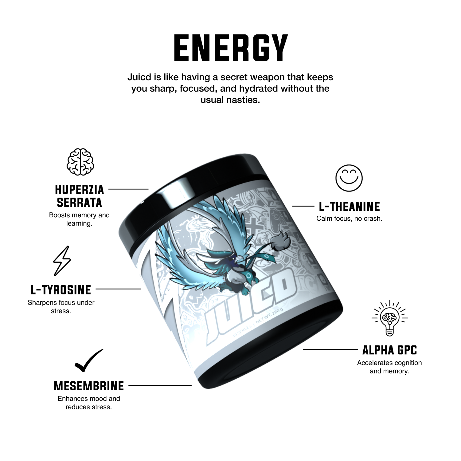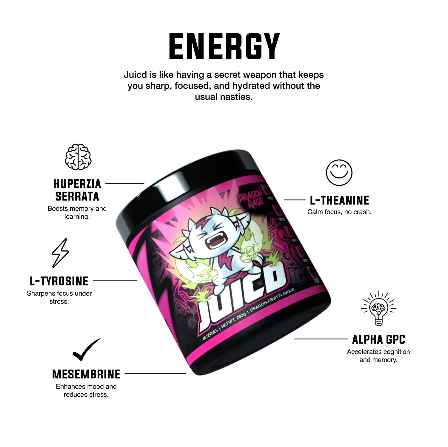 Why not? Imagine a world where your energy drink is low-calorie, 99% sugar-free, and packed with caffeine, Alpha GPC, plus a bunch of brain-boosting nootropics and minerals. That's Juicd. It's like having a secret weapon that keeps you sharp, focused, and hydrated without the usual nasties.